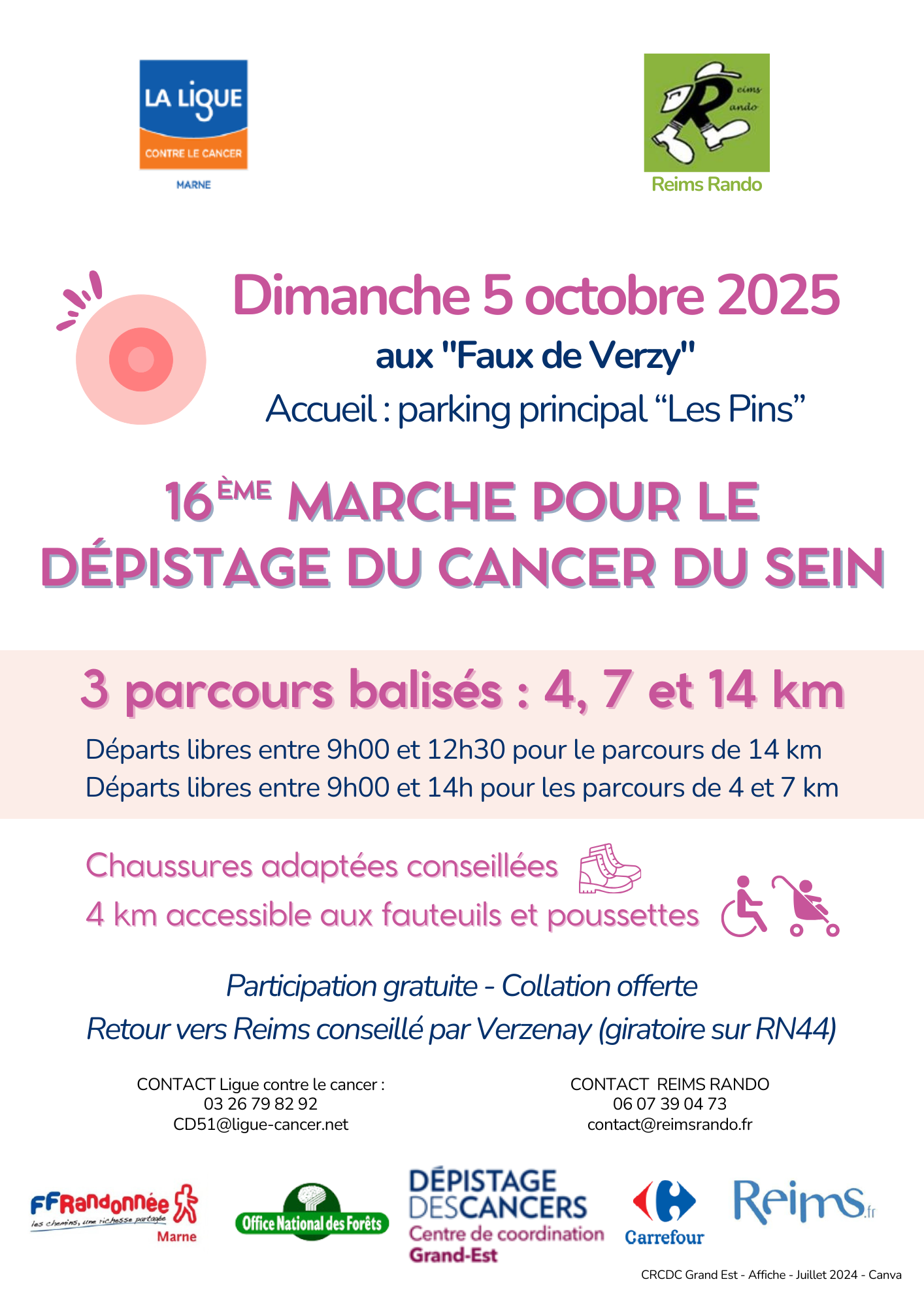- Dimanche 5 octobre : marche rose dans les Faux de Verzy